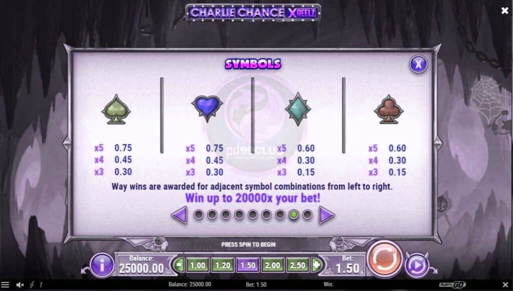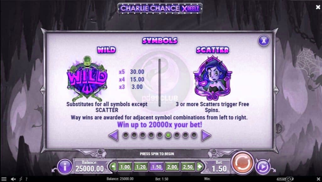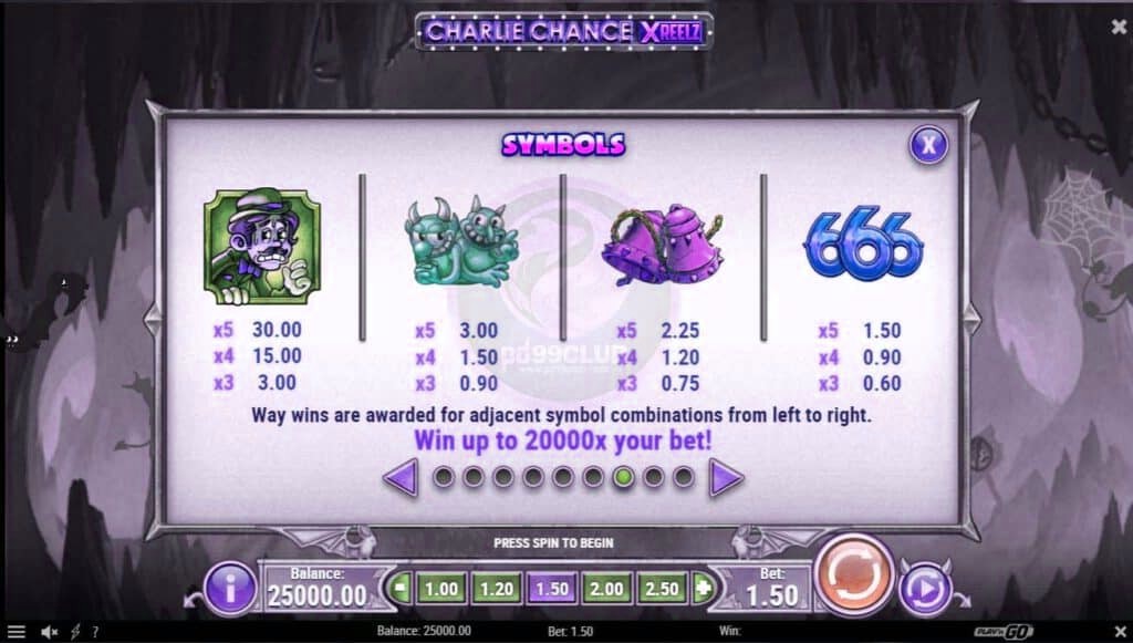 เกมสล็อต Charlie Chance เป็นเกมสล็อตออนไลน์ที่ slotxoeasy นี่คือชายคนหนึ่งที่ดวงชะงักงันไปมาเหมือนกระดานหก หนึ่งนาทีที่เขาได้รับโชคจากหญิงแปลกหน้า ถัดมาเขาอยู่ในยมโลกและสงสัยว่ามันผิดพลาดตรงไหน เห็นได้ชัดว่าชาร์ลีรีบเร่งเพื่อความร่ำรวยอย่างรวดเร็ว ชาร์ลีละเลยที่จะอ่านพิมพ์ดีดและตอนนี้พบว่าตัวเองกำลังต่อสู้เพื่อความอยู่รอดของเขา ในด้านบวกก็ยังคงเป็นไปได้สำหรับผู้เล่นที่จะร่ำรวยเก็บมากยิ่งขึ้นดังนั้นในขณะนี้ในการเสพสมนี้