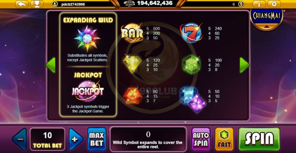 สัญลักษณ์ EXPANDING WILD, JACKPOT GAME & สัญลักษณ์การจ่าย