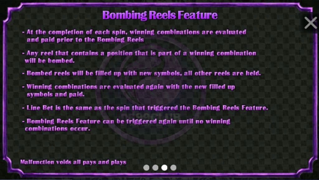 - ฟีเจอร์บอมบิ้งรีลส์สามารถเกิดขึ้นซํ้าได้เรื่อยๆ จนกว่าจะไม่มีฟีเจอร์บอมบิ้งรีลส์เกิดขึ้น