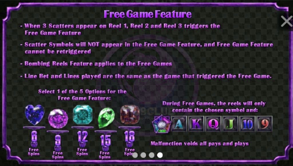– ไดมอนด์สีม่วง จะให้ 12 ฟรีสปิน