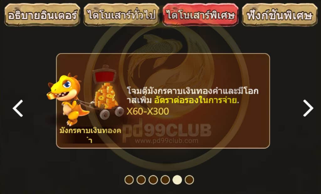 โจมตีมังกรคาบเงินทองคำและมีโอกาสเพิ่ม อัตราต่อรองในการจ่าย. X60-300