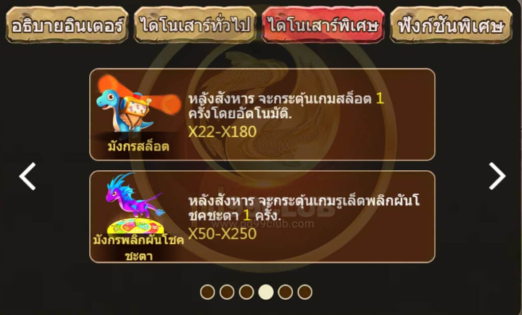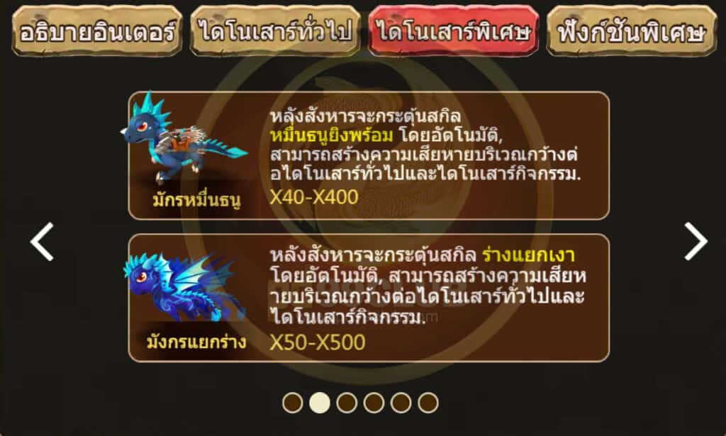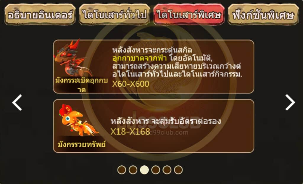 สัญลักษณ์การจ่าย ไดโนเสาร์พิเศษ