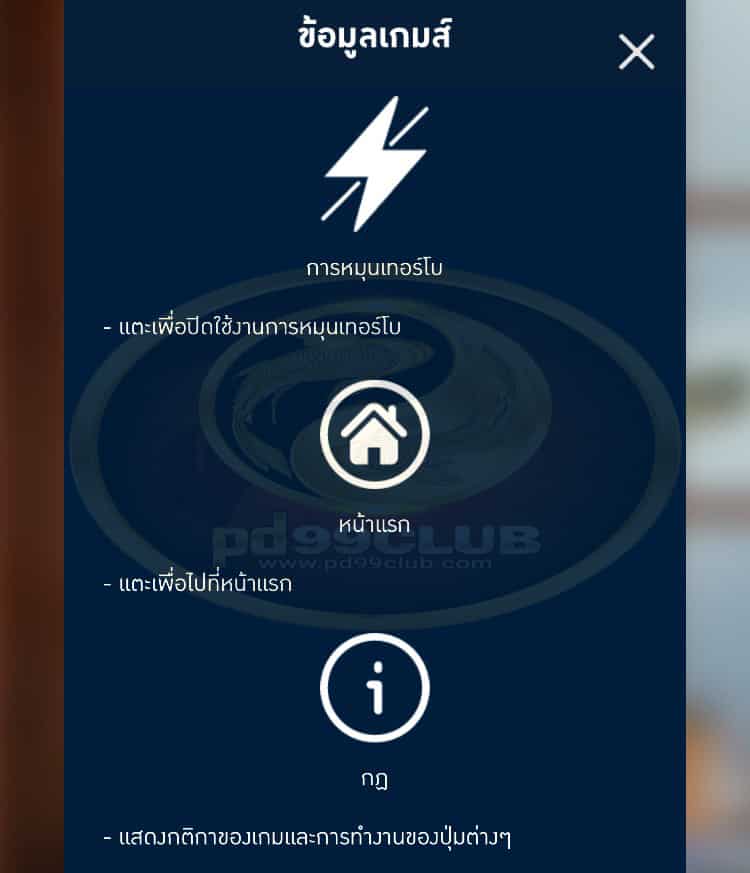 - แตะเพื่อเปิดใช้งานการหมุนเทอร์โบซึ่งจะลดระยะเวลาการหมุนเพลาในเกมหลัก