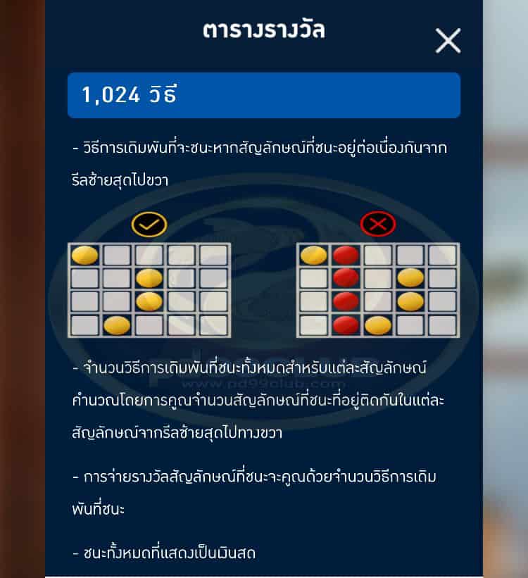 - การจ่ายรางวัลสัญลักษณ์ที่ชนะจะคูณด้วยจำนวนวิธีการเดิมพันที่ชนะ