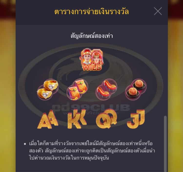 - ชุดสัญลักษณ์ที่ชนะรางวัลและการจ่ายเงินรางวัลจะเป็นไปตาม “ ตารางการจ่ายเงินรางวัล”
