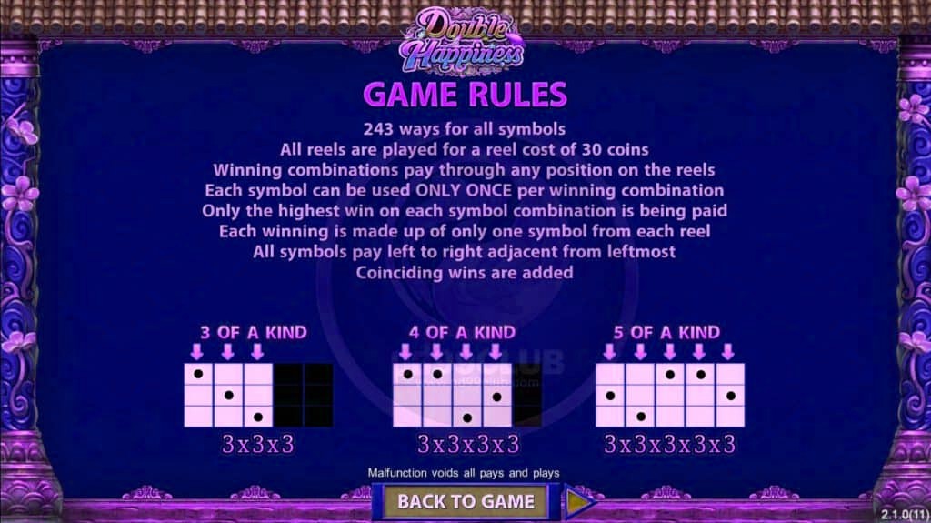 - สัญลักษณ์ทุกตัวจ่ายรางวัลจากซ้ายไปขวาโดยอยู่ถัดจากด้านซ้ายสุด