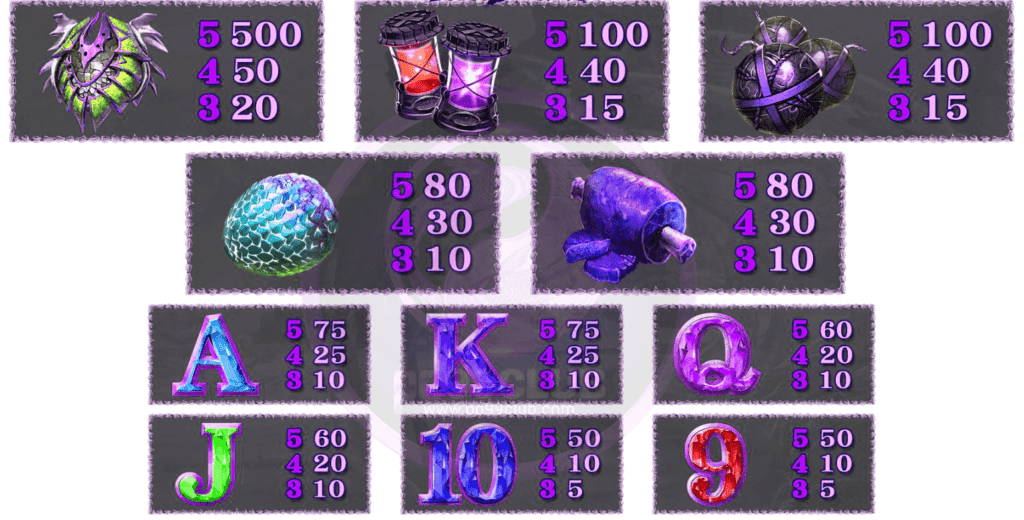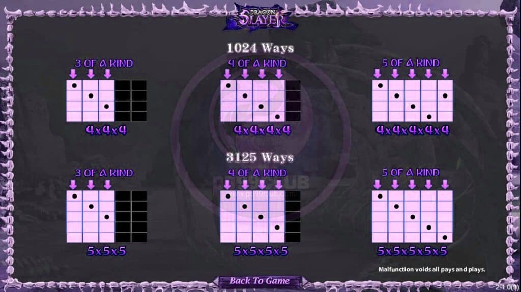 สัญลักษณ์อัตราการจ่ายสูงสุดของเกม Dragon Slayer มีทั้งหมด 5 สัญลักษณ์