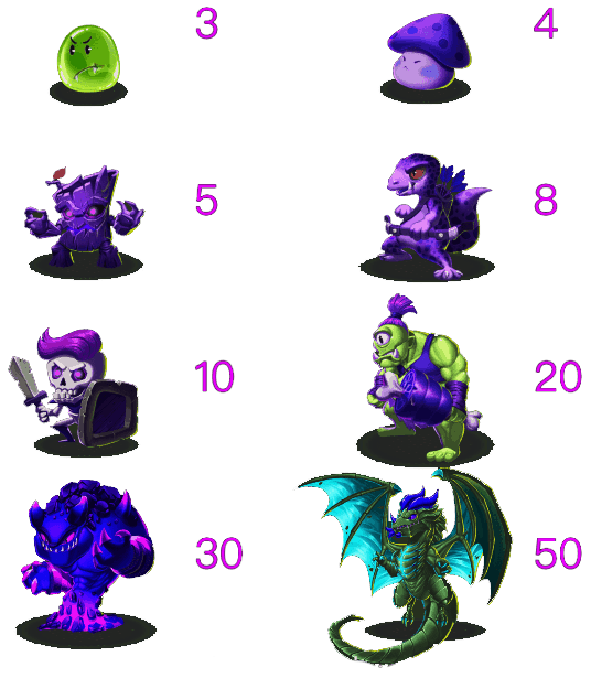 - คะแนนเอาชนะมอนสเตอร์=เดิมพันทั้งหมด* อัตราเดิมพัน