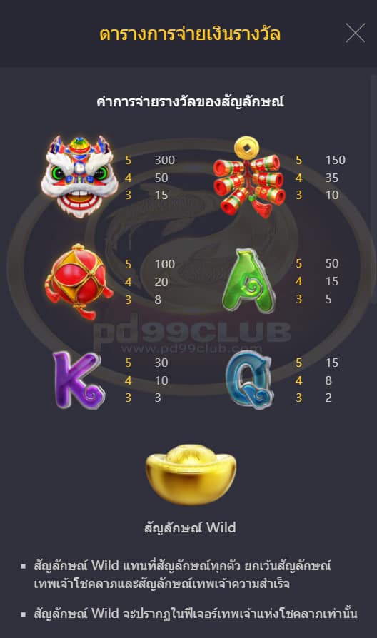 สัญลักษณ์ Wild จะปรากฏในในฟีเจอร์เทพเจ้าแห่งโชคลาภเท่านั้น