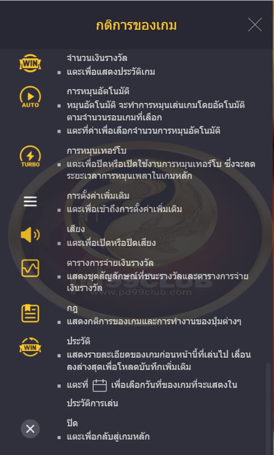 แสดงกติการของเกมและการทำงานของปุ่มต่างๆ
