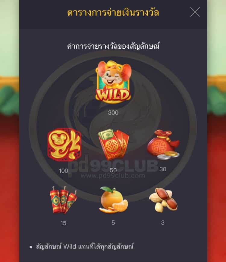 สัญลักษณ์ Wild แทนที่ได้ทุกสัญลักษณ์