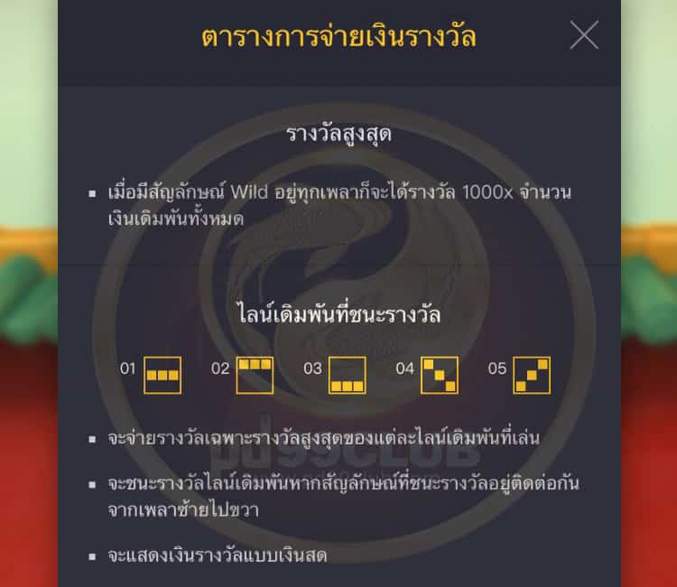จะจ่ายรางวัลเฉพาะรางวัลสูงสุดของเเต่ละเพย์ไลน์เดิมพันที่เล่น