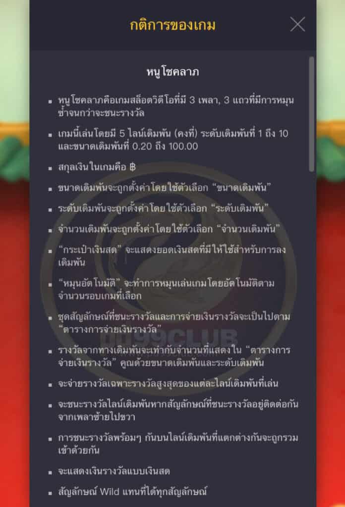 กติกาของฟีเจอร์หนูโชคลาภ และ กติการางวัลสูงสุด