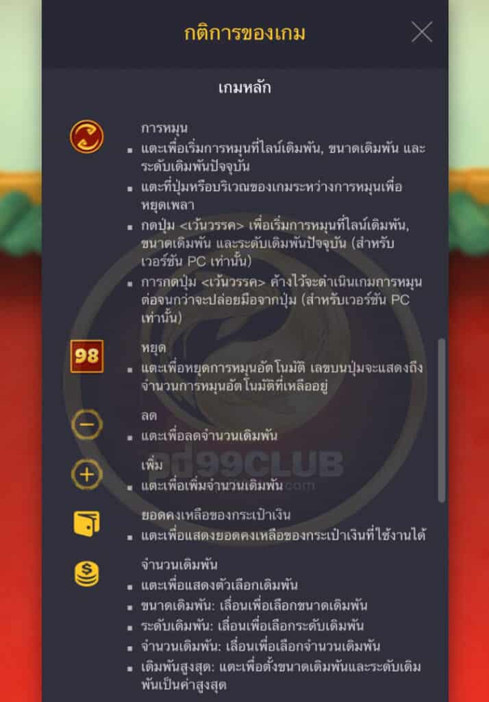 “ หมุนอัตโนมัติ” จะทำการหมุนเล่นเกมโดยอัตโนมัติตามจำนวนรอบเกมที่เลือก