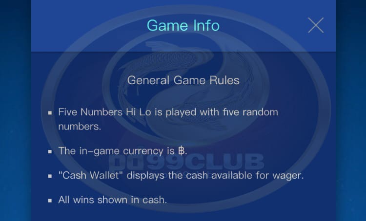 รายละเอียดเกม Frive Numbers Hi Lo