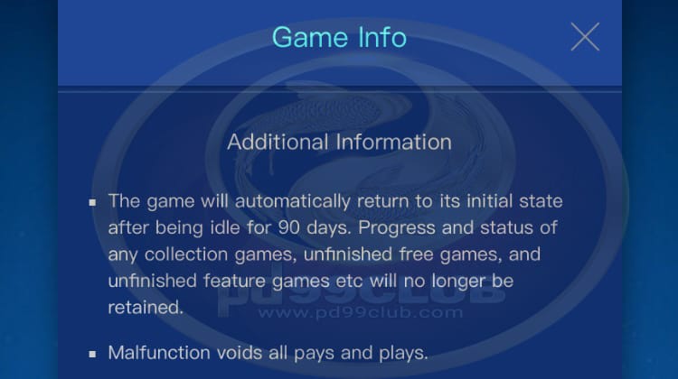- เกมจะกลับสู่สถานะเริ่มต้นโดยอัตโนมัติหลังจากที่ไม่มีการใช้งานเป็นเวลา 90 วัน ความคืบหน้าและสถานะของเกมคอลเลกชันเกมฟรีที่ยังไม่เสร็จและเกมฟีเจอร์ที่ยังไม่เสร็จ ฯลฯ จะไม่ถูกเก็บไว้อีกต่อไป