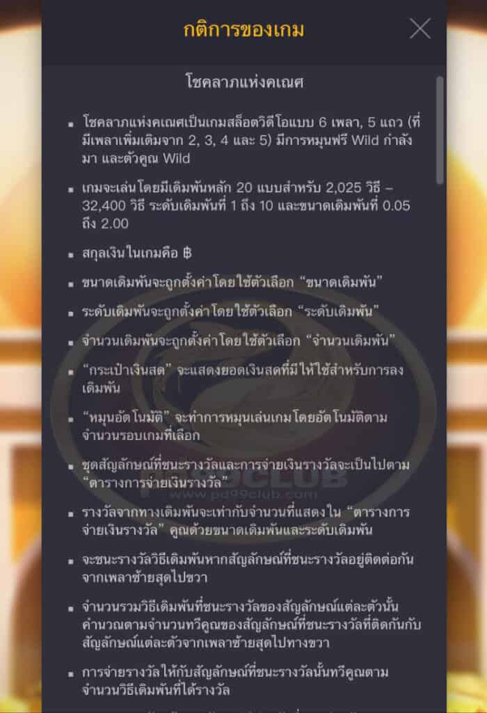 - กรณีเกิดความขัดข้องจะยกเลิกการจ่ายรางวัลและการเล่นทั้งหมด