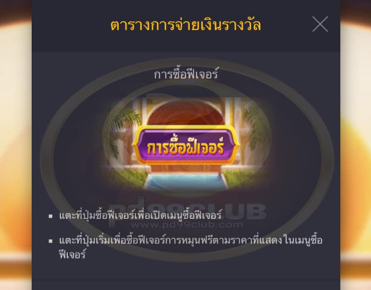- เเตะที่ปุ่มซื้อฟีเจอร์เพื่อเปิดเมนูซื้อฟีเจอร์ตามราคาที่เเสดงในเมนูซื้อฟีเจอร์