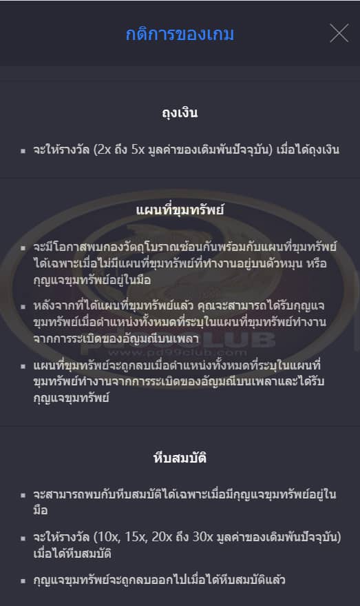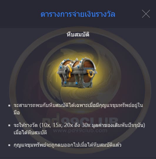 จะให้รางวัล (10x 15x 20x ถึง 30x มูลค่าของเดิมพันปัจจุบัน) เมื่อได้หีบสมบัติ