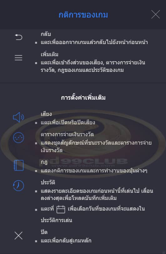 เเตะเพื่อเข้าถึงส่วนของเสียง ตารางการจ่ายเงิน รางวัล กฏของเกมและประวัติของเกม