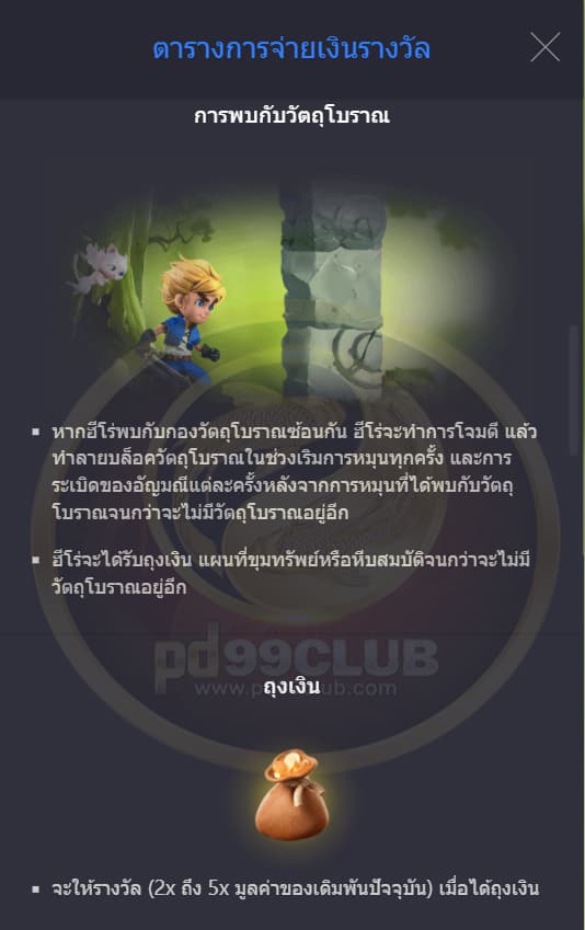 จะให้รางวัล (2x ถึง 5x มูลค่าของเดิมพันปัจจุบัน) เมื่อได้ถุงเงิน