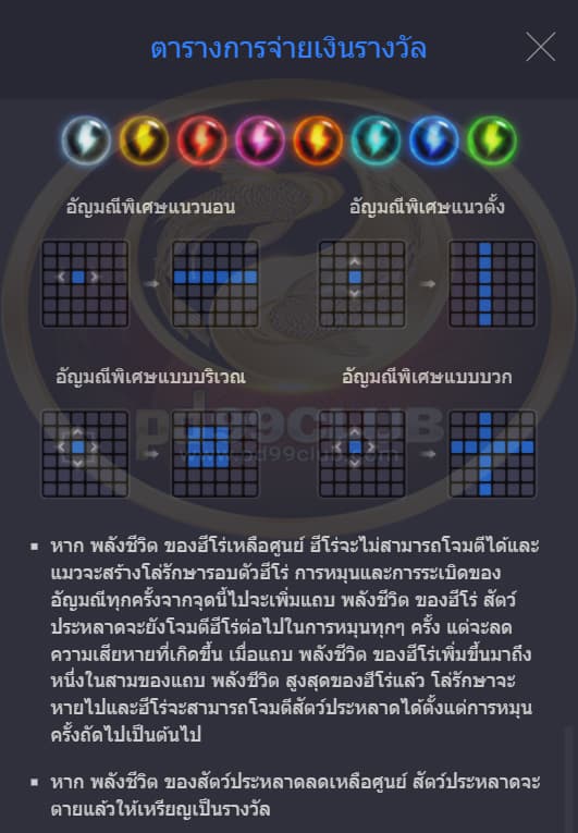ค่าการจ่ายรางวัลของสัญลักษณ์มีทั้งหมด 8 สัญลักษณ์.