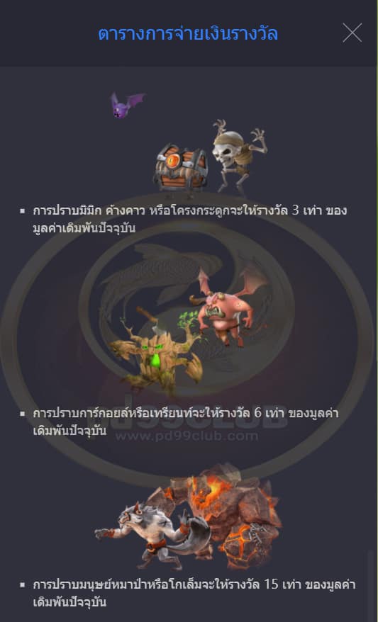 การปราบการ์กอยล์หรือเทรียนท์จะให้รางวัล 6 เท่า ของมูลค่าเดิมพันปัจจุบัน