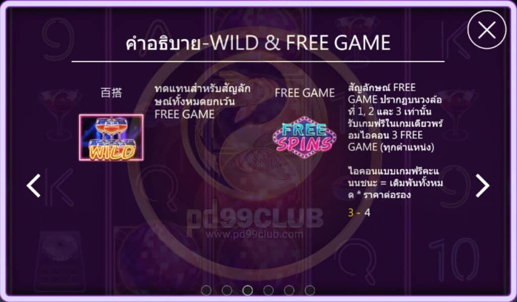 สัญลักษณ์ Wild ใช้แทนสัญลักษณ์ทุกตัว ยกเว้นสัญลักษณ์ Free Game