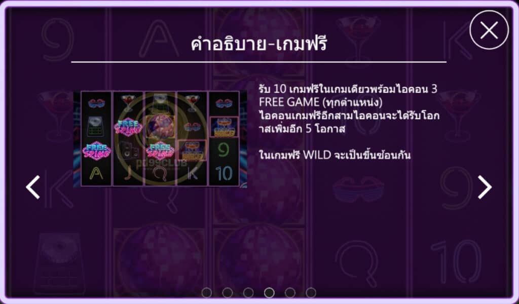 สัญลักษณ์ Free Game ปรากฏวงล้อที่ 1, 2 และ 3 เท่านั้น รับเกมฟรีในเกมเดียวพร้อมไอคอน 3 Free Game (ทุกตำแหน่ง)