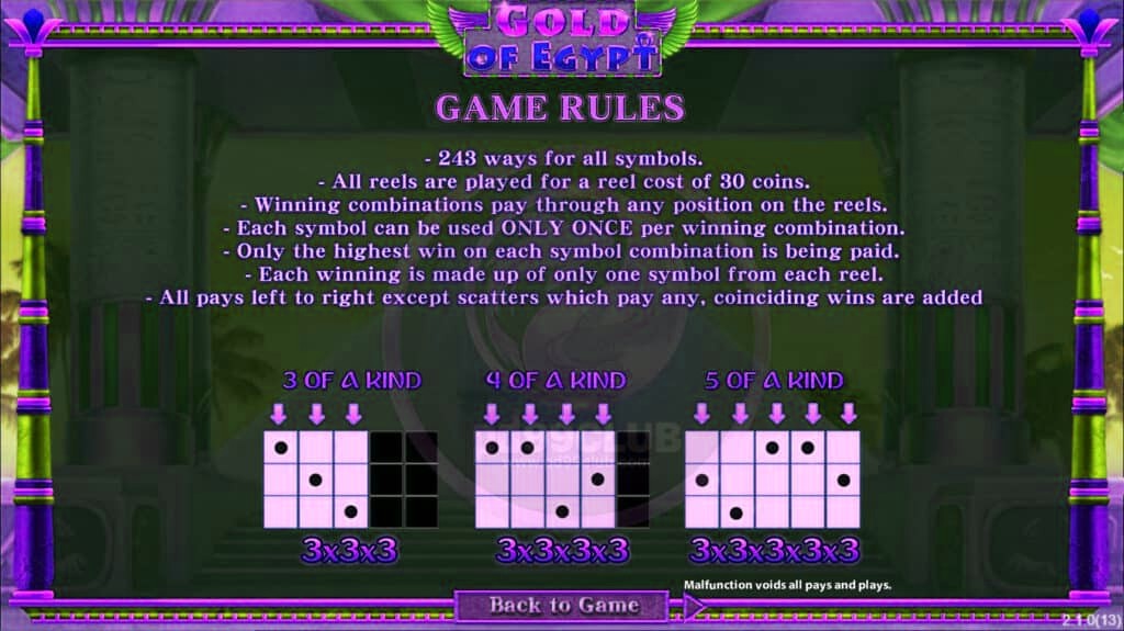 - รางวัลทั้งหมดจ่ายจากซ้ายไปขวา ยกเว้นกระจ่ายจะจ่ายที่ตำแหน่งใดๆ