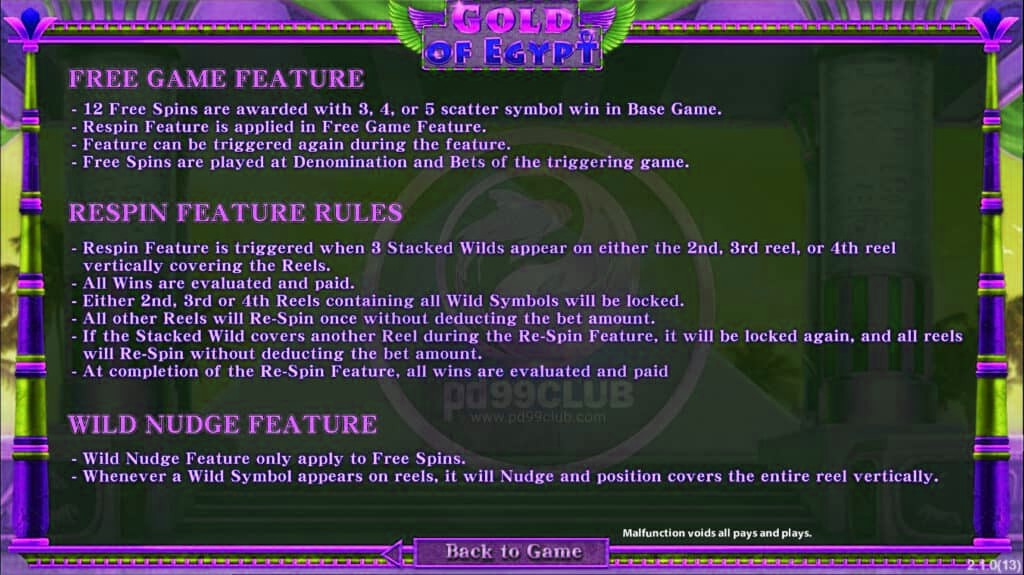 - ฟีเจอร์ฟรีเกมสามารถเกิดขึ้นซ้ำระหว่างฟรีสปินได้