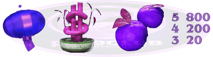 - สัญลักษณ์โคมไฟ ติดกัน 3 ตัว อัตราการจ่ายเงินรางวัลที่คูณ 20 หากออกติดกัน 4 ตัว คูณ 200 ห้าตัวคูณ 800