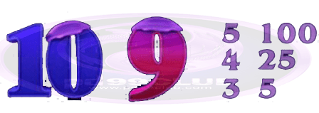 - สัญลักษณ์อักษร 10 และสัญลักษณ์อักษร 9 ติดกัน 3 ตัว อัตราการจ่ายเงินรางวัลที่คูณ 5 หากออกติดกัน 4 ตัว คูณ 25 ห้าตัวคูณ 100