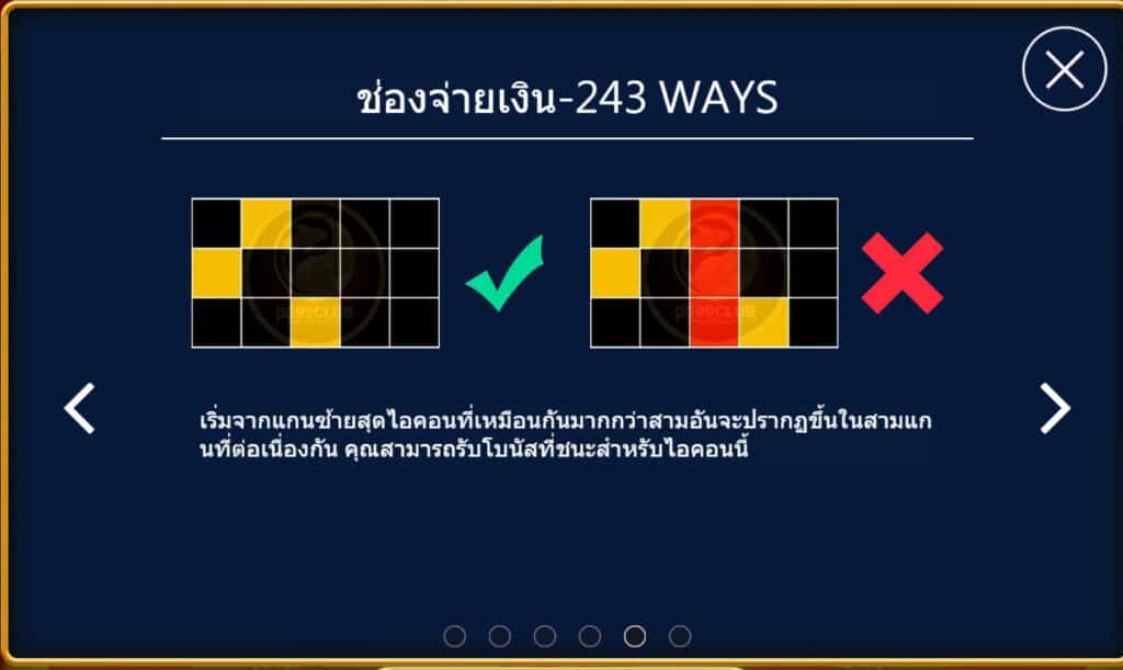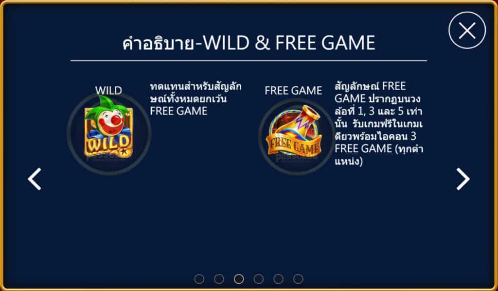 สัญลักษณ์ Wild ใช้แทนสัญลักษณ์ทั้งหมดยกเว้นสัญลักษณ์ Free Game