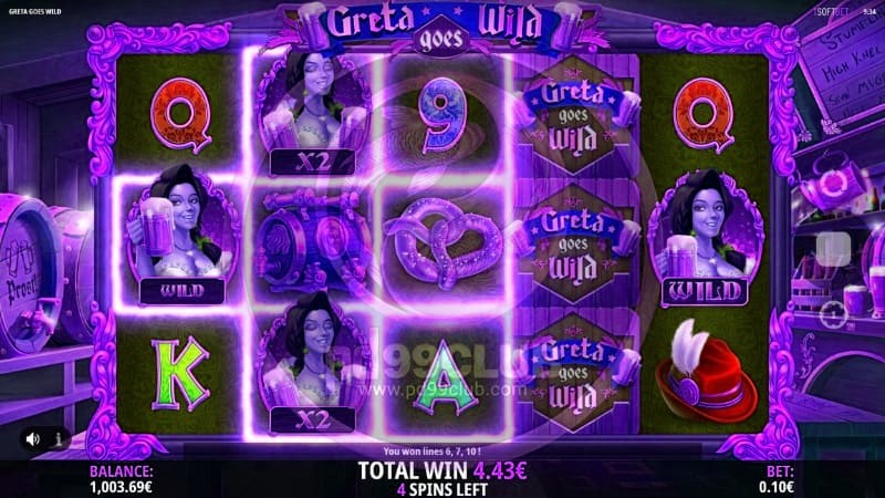 ที่นี่เราได้รับการต้อนรับอย่างอบอุ่นจาก Greta และเธอก็พร้อมที่จะเสิร์ฟเหยือกเบียร์ขนาดใหญ่จริงๆ เบื้องหลังของเกมคือบาร์เล็กๆ ที่คุณลงเอยด้วย ที่ที่คุณเห็นถังเบียร์จำนวนมากและแก้วเบียร์ที่เต็มไป มันเป็นสถานที่ที่เหมาะสมสำหรับจิตวิญญาณที่กระหายน้ำจริงๆ วงล้อของเกมได้รับการตกแต่งด้วยกรอบที่มีรายละเอียดอย่างดีพร้อมขอบสีทอง ต่อไปนี้คือสัญลักษณ์ต่างๆ จำนวนหนึ่งที่คุณสามารถรับได้สำเร็จ โดยสัญลักษณ์ที่จ่ายต่ำกว่าประกอบด้วย 9, 10, J, Q, K และ A นอกจากนี้ยังมีสัญลักษณ์ที่สูงกว่าเล็กน้อยในรูปของหมวกสีเขียวที่มีขนนก ผู้ชายกำลังดื่มเบียร์ เพรทเซล ถังเบียร์ที่ตกแต่งอย่างดี และสัญลักษณ์ที่มาพร้อมกับข้อความ Greta Goes Wild ความดุร้ายของเกมประกอบด้วยตัวเกรตา ซึ่งเราจะพูดถึงรายละเอียดเพิ่มเติมในภายหลังเกี่ยวกับลักษณะของไวด์นี้ สเตนเบียร์เป็นภาชนะศักดิ์สิทธิ์สำหรับเบียร์ในช่วงเทศกาลนี้ ดังนั้นแน่นอนว่ามันรวมอยู่ในสล็อตแมชชีนนี้ เป็นสัญลักษณ์กระจายของเกมและสามารถให้โอกาสหมุนฟรีที่ยอดเยี่ยมแก่คุณได้