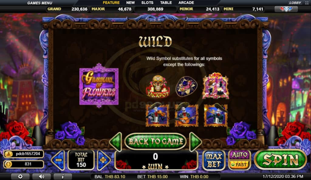 สัญลักษณ์ Wild สามารถใช้ทดแทนทุกสัญลักษณ์ยกเว้นสัญลักษณ์ Scatter,Bonus,Mysterious Fortune และ Jackpot