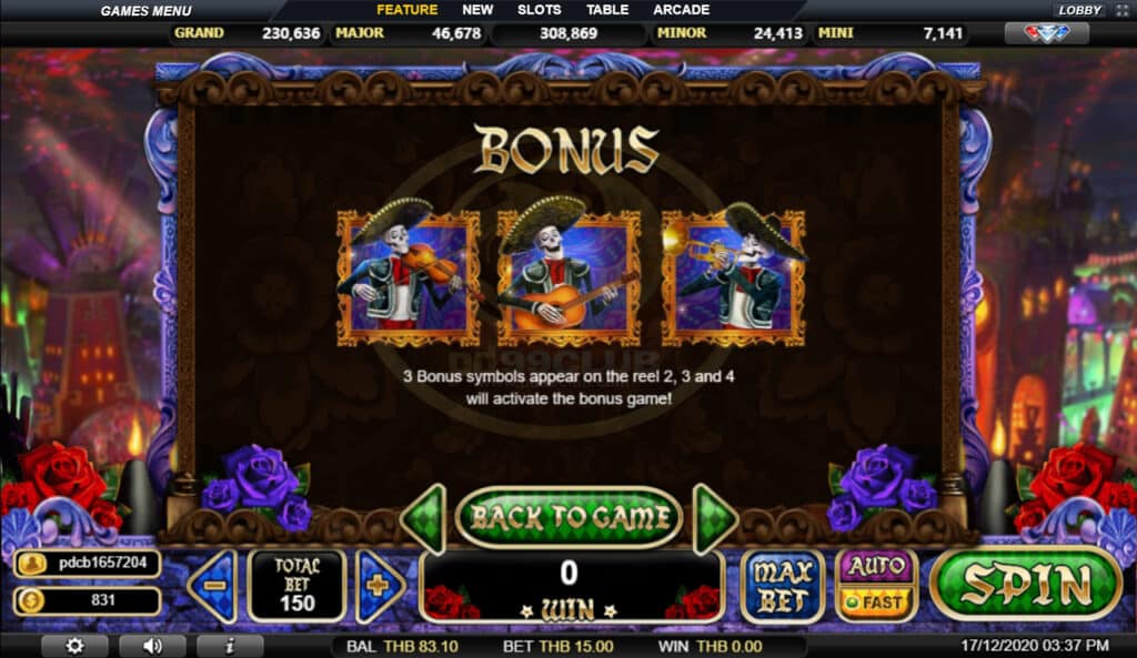 สัญลักษณ์ Bonus 3 สัญลักษณ์จะปรากฏบนรีล 2, 3 และ 4 จะเปิดใช้งานเกมโบนัส!
