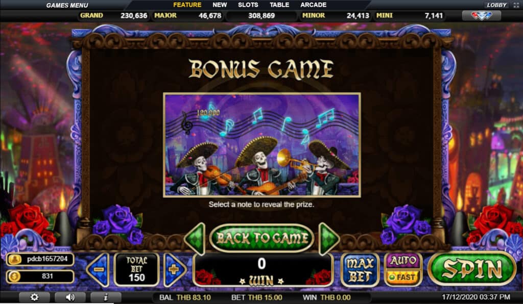 สัญลักษณ์ Bonus Game เลือกบันทึกเพื่อเปิดเผยรางวัล