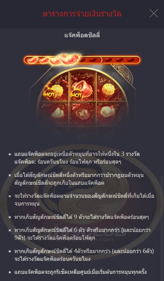 หากเก็บสัญลักษณ์ชิลลี่ได้ 9 ตัวจะได้รางวัลเเจ็คพ็อตร้อนสุดๆ