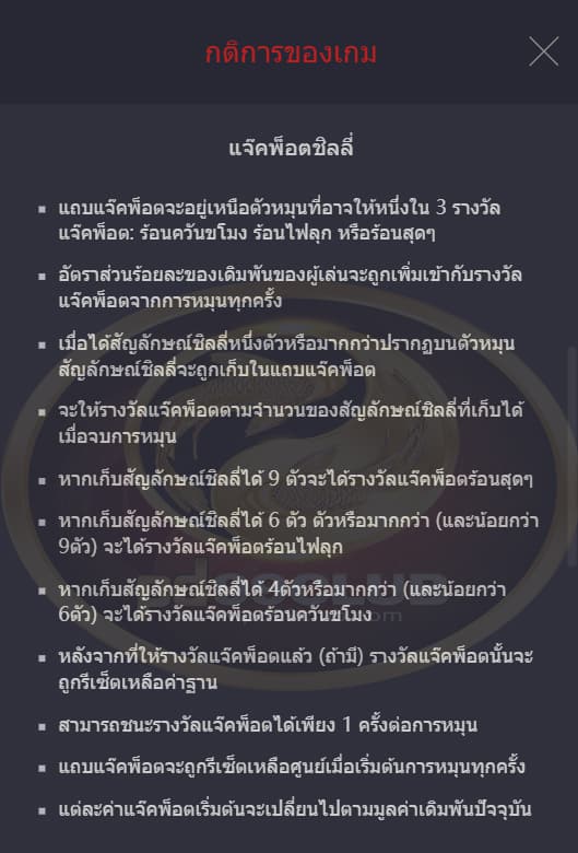 สามารถชนะรางวัลเเจ็ตพ็อตได้เพียง 1 ครั้งต่อการหมุน