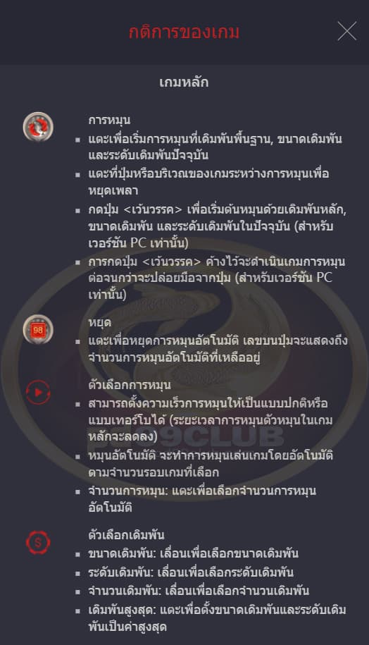 “ หมุนอัตโนมัติ” จะทำการหมุนเล่นเกมโดยอัตโนมัติตามจำนวนรอบเกมที่เลือก