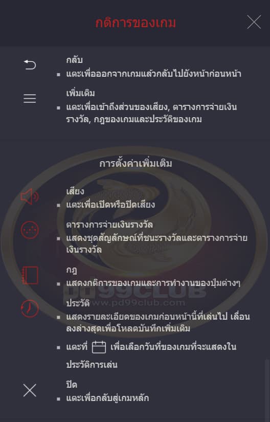 แสดงกติการของเกมและการทำงานของปุ่มต่างๆ