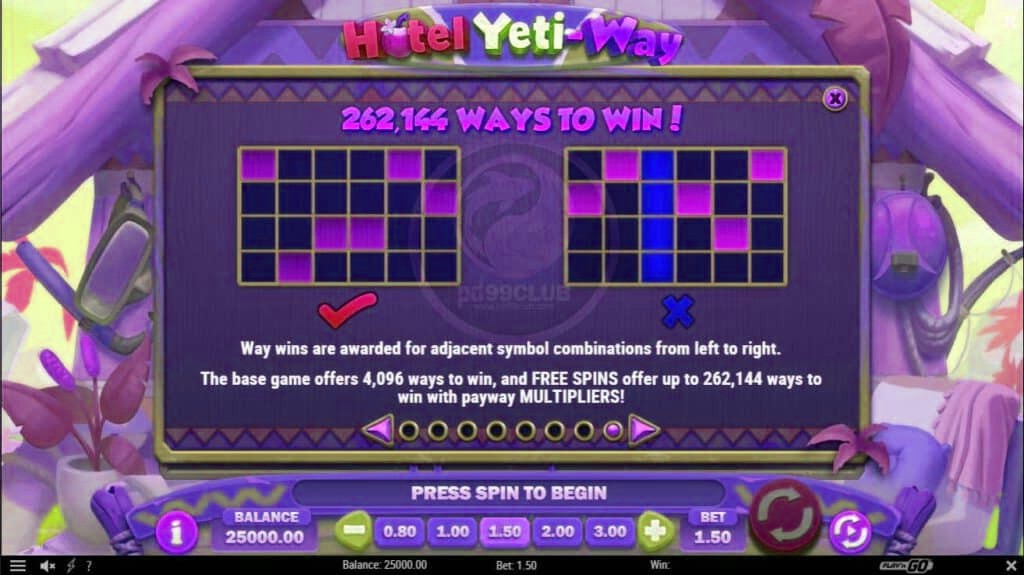 - Multipliers ทางจ่ายเพิ่มจำนวนวิธีในการชนะสูงสุด 262,144 วิธี