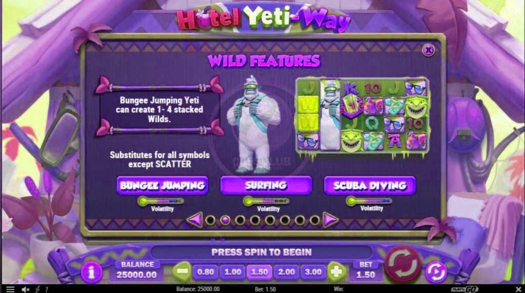 - Bungee Jumping – เพิ่มโอกาสในการได้ Wild ที่กองซ้อนสูงสุด 4 อัน