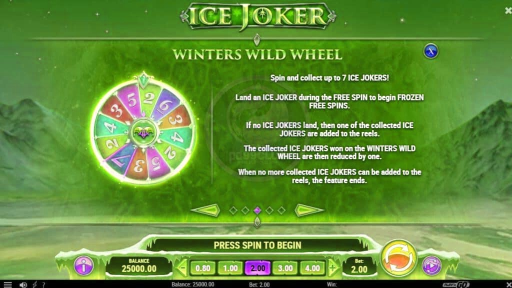 - Ice Jokers จะนิ่งอยู่กับที่เเละขยายด้วย Free Spin แต่ละครั้ง เมื่อเติมวงล้อจนเต็มเเล้วจะถูกนำออก