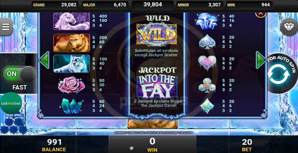 สัญลักษณ์ Wild,Jackpot Into The Fay และสัญลักษณ์การจ่าย