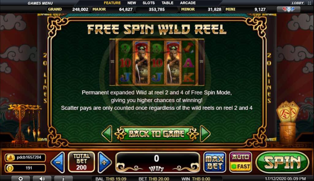 สัญลักษณ์ Free Spin Wild Reel Wild ขยายแบบถาวรที่รีล 2 และ 4 ของ Free Spin Mode ทำให้คุณมีโอกาสชนะสูงขึ้น! การจ่ายกระจายจะนับเพียงครั้งเดียวโดยไม่คำนึงถึงวงล้อป่าในรีล 2 และ 4
