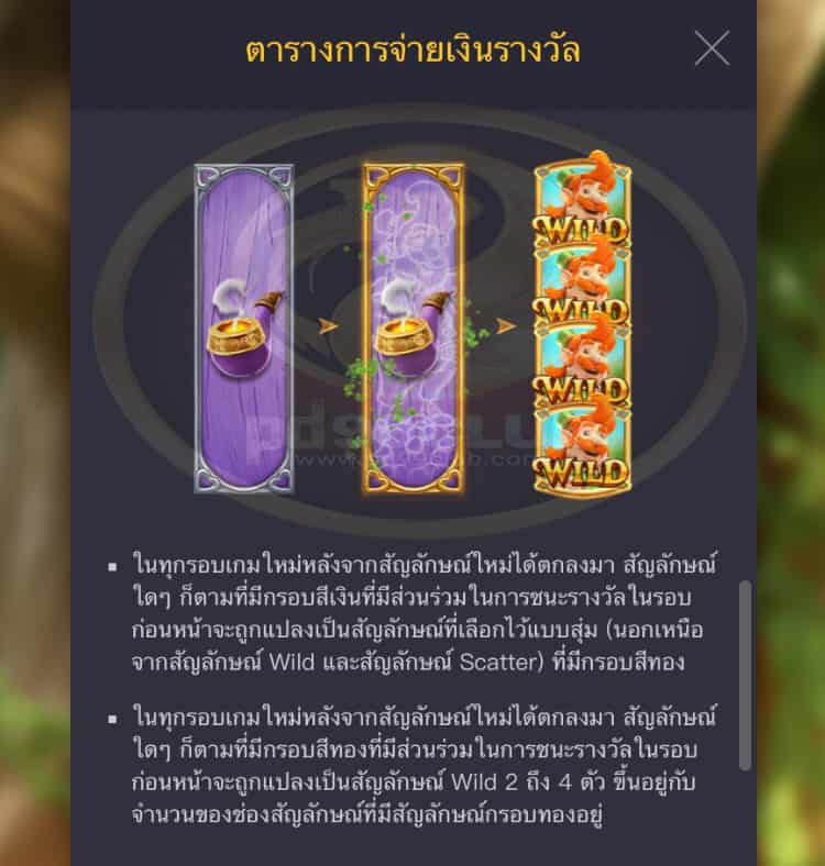 - สัญลักษณ์ Wild จะปรากฏบนเพลา 2, 3, 4 และ 5 เท่านั้น