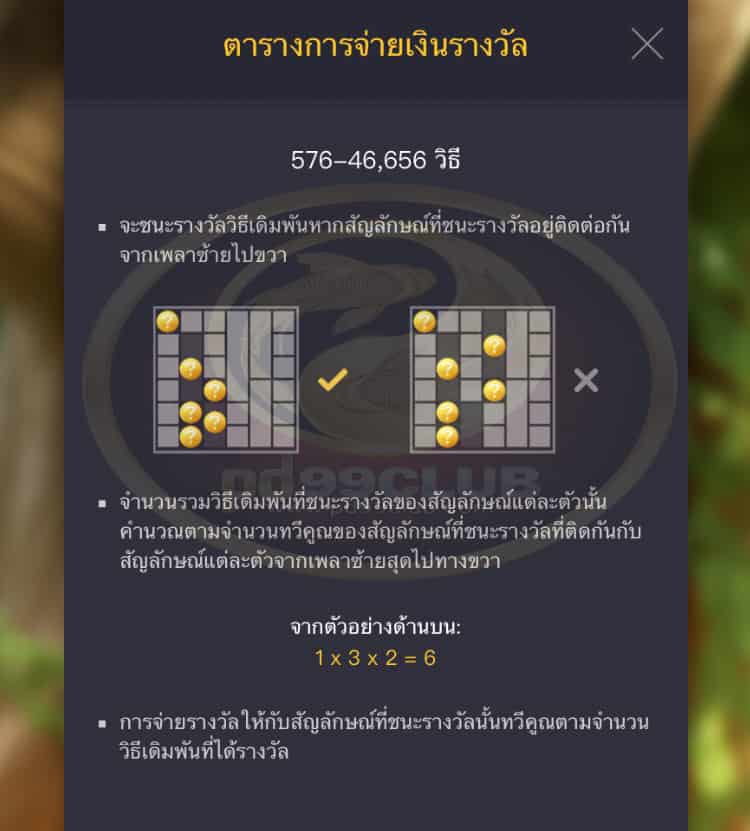 - การจ่ายรางวัลให้กับสัญลักษณ์ที่ชนะรางวัลนั้นทวีคูณตามจำนวนวิธีเดิมพันที่ได้รางวัล