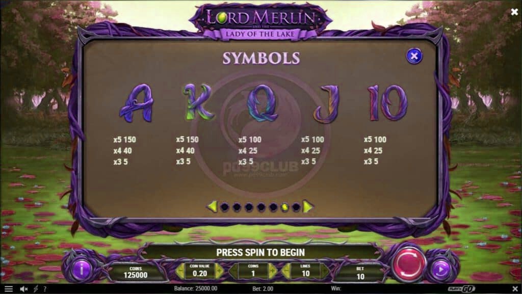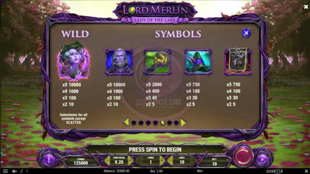 เกมสล็อต lord merlin and the lady of the lake เป็นเกมสล็อตออนไลน์ที่ถูกพัฒนาโดยเว็บไซต์ slotxoeasy และได้รับความนิยมอย่างมากในหมู่ของแฟนๆ ชาวอาเธอร์เป็นเกมสล็อตวิดีโอที่มี 3 แถว 5 วงล้อ และ 10 ไลน์เดิมพันที่เอาชนะรางวัล ซึ่งนับได้ว่าเป็นคุณสมบัติที่ดีสำหรับการหมุนฟรีสัญลักษณ์ที่ขยายได้ และการออกแบบที่ยอดเยี่ยมโน้ตดนตรีเเละภาะเคลื่อนไหว สล็อตวิดีโอภายในเกมนั่นเป็นเกมที่มีความตั้งอยู่ริมทะเลสาบที่สวยงามเหนื่อป่าโอ๊ก ท้องฟ้าอันสวยงามและบรรยากาศริมนํ้าที่เต็มไปด้วยดอกบัว ให้บรรยากาศเงียบสงบร่มรื่น เมื่อเล่นเกมไปพร้อมกับฟังเสียงดนตรีที่ประกอบกับการเล่นที่ไพเราะ ทำให้เพลิดเพลินองค์ประกอบของช่องนี้จะสร้างบรรยากาศที่สมบูรณ์แบบ ในการเล่นที่เพลิดเพลินไปกับอีกหนึ่งตำนานที่เเท้จริงของวรรณกรรมเเนวอัศวิน